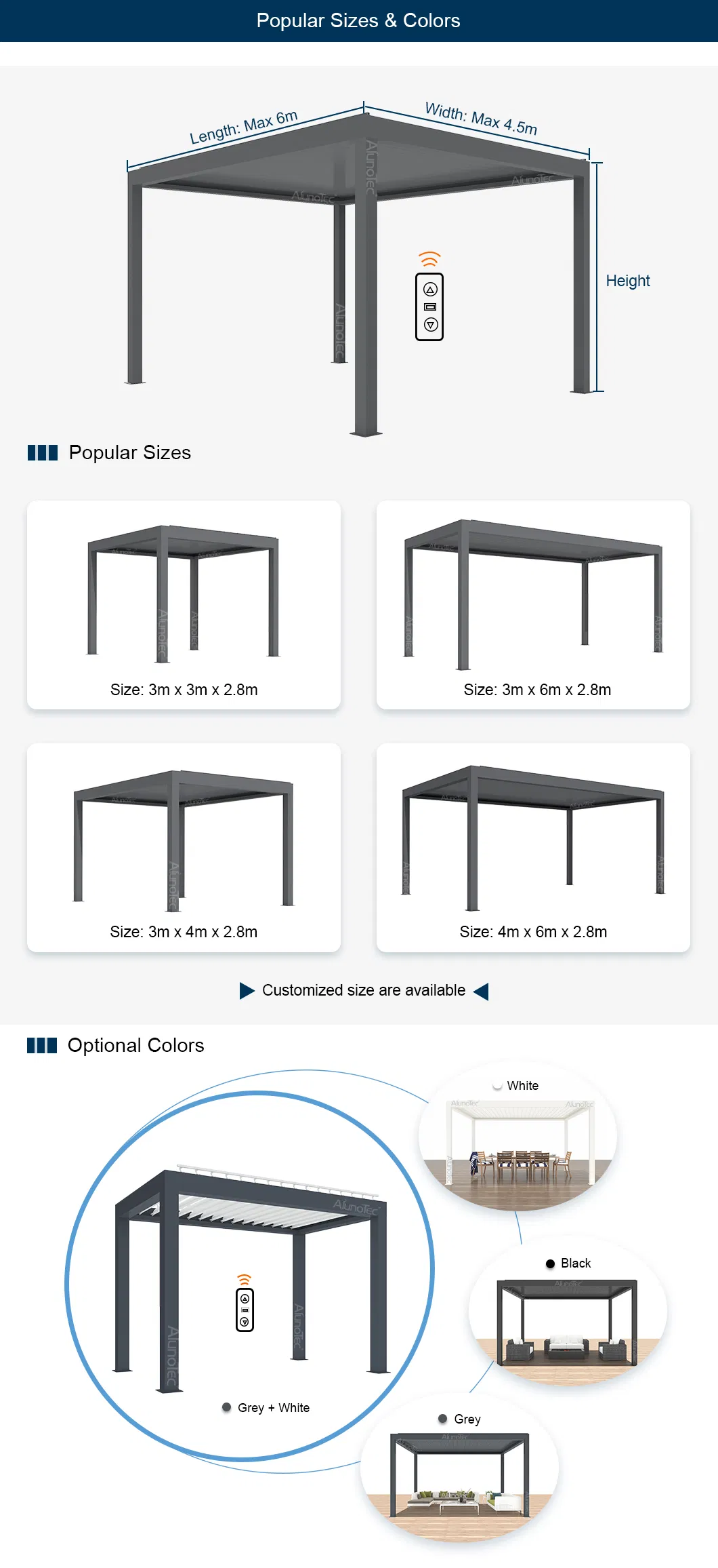 | Color Options | White, Grey, Black, or Customized |